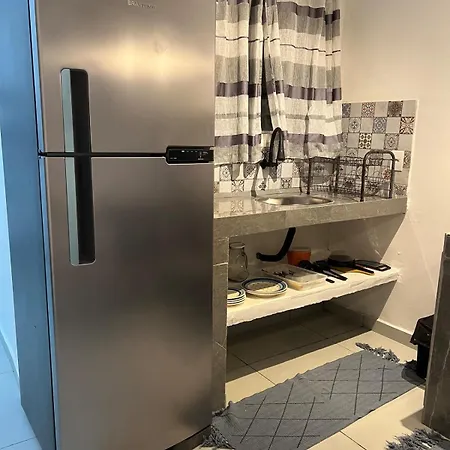 Casa Flamboyant Pipa - 1 Quartoアパートのお客様は設備の整った台所を利用できます。 Terminal de Oni de Pipaバス停もから徒歩で10分離れたところにあります。